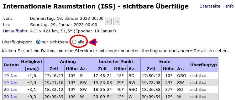 Internationale Raumstation (ISS) – sichtbare Überflüge